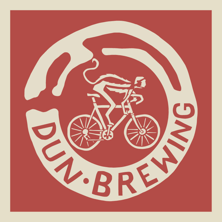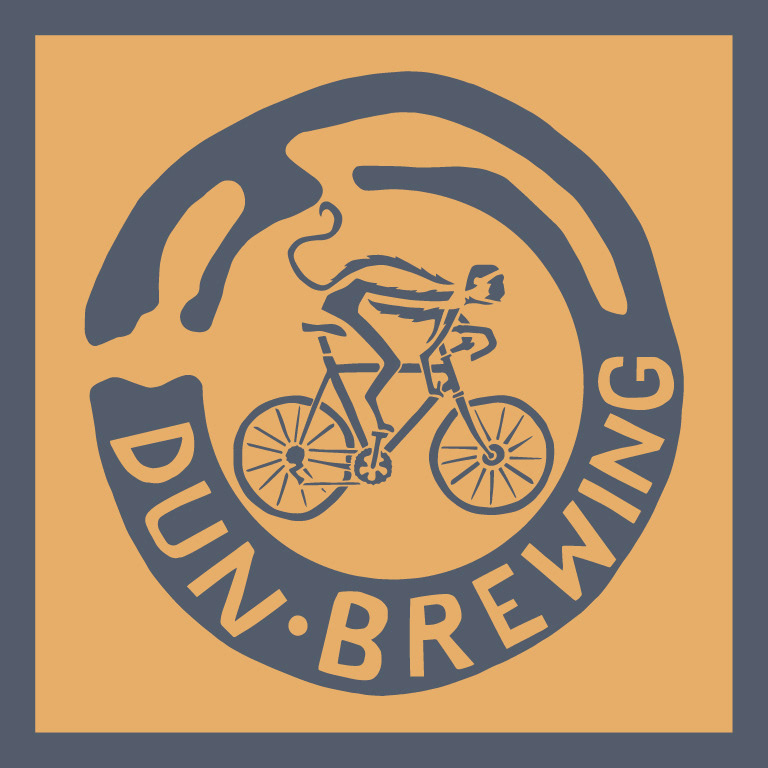 DUN BREWING – an organic artisan brewery with a logo representing a plan of the local highland broch, Dun Troddan, hence the play on the word 'Dun'. The client, a keen cyclist, wanted a clean, bold approach. Illustration by Iona Berry.