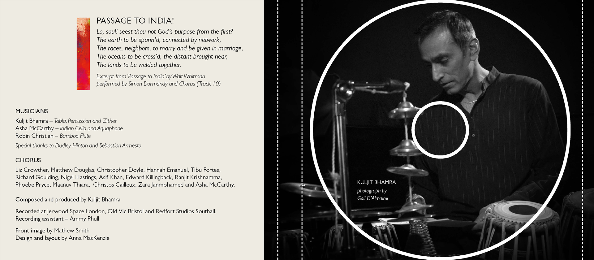 CD design for the original music by Kuljit Bhamra, for the theatre production of 'A PASSAGE TO INDIA'. Illustration by Mathew Smith.